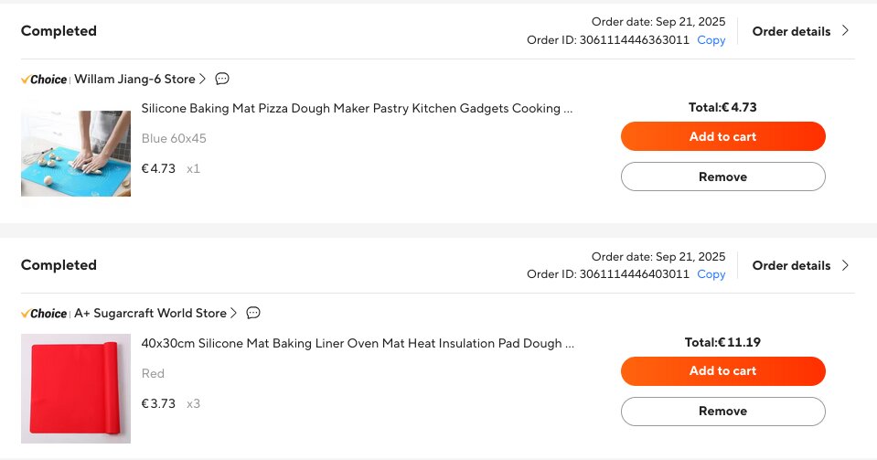 Isommalla “matolla” ei juurikaan ole käyttöä, koska olen kaulinnut suoraan leivinpaperin korvaaville pienemmille “silikonimatoille”, joihin taikina ei tartu eikä silikoni veny kastuessaan ja kutistu kuivuessaan, kuten paperi tekee. Ajan myötä silikoni tullee myös halvemmaksi, koska paperi on melkein aina kertakäyttöistä.